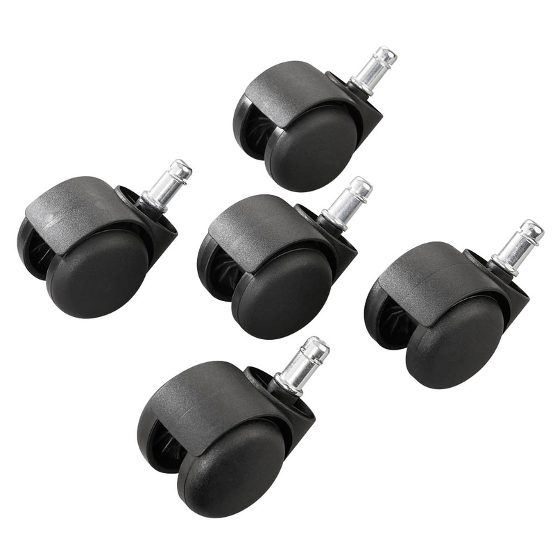 Die Rollen sind aus hartem Kunststoff gefertigt. Damit laufen Sie leicht über weiche Böden wie beispielsweise Teppiche. Gleichzeitig schonen sie Ihren Boden. Dank der Ersatzrollen können Sie auch einen Bürostuhl, der bisher auf weichen Rollen gestanden ist, ganz leicht umfunktionieren. So können Sie stets Ihren Lieblingsstuhl behalten.