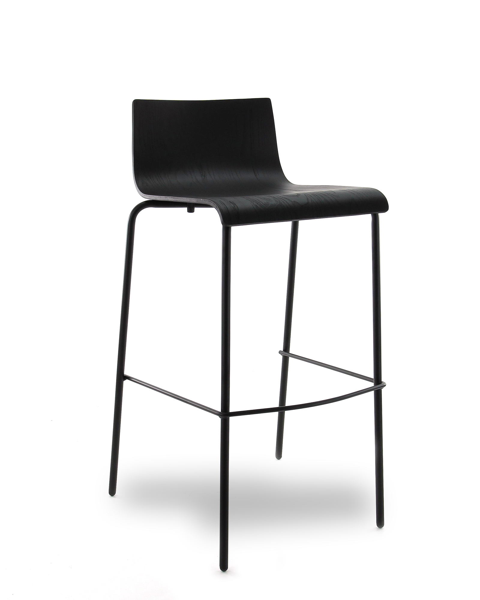 Der Hochstuhl ein zeitloser design Barhocker der mit einem vierbeinigen mattschwarzen Metallgestell mit pulverbeschichtet ausgestattet ist. Die Rückenlehne und Sitzfläche bestehen aus Sperrholz mit schwarz lackierter Eiche. Der BB-7 ist bis zu 6 Stück stapelbar und wird komplett montiert geliefert.