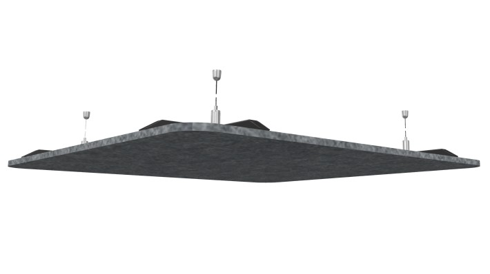 - Set von Aufhängungselementen (4 Stück) für akustische Paneele. Zur Befestigung an Decken aus Holz, Mauerwerk, Gips. Einstellbare Drahtseillänge 50-2000 mm.