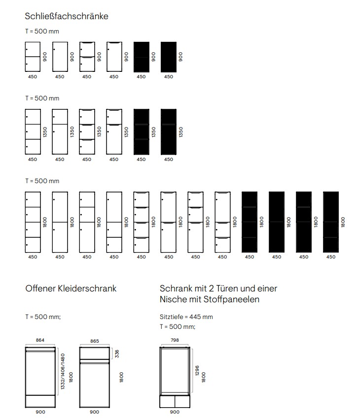 • Seiten, Ober- und Unterteil aus 18 mm MFC (Melamin -Dekor nach Wahl) mit 1 mm ABS Kanten