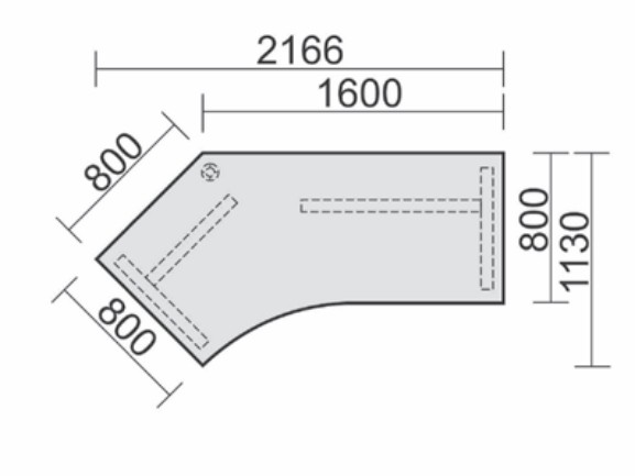 Schreibtisch 135° links mit C-Fuß-Gestell