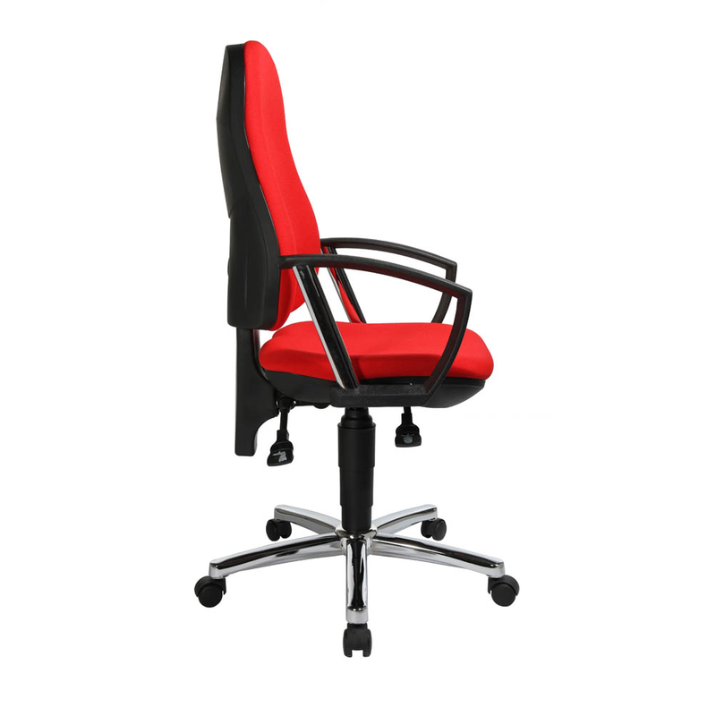 Die Rückenlehne aus angenehmem Polstermaterial sorgt dafür, dass Sie stets einen hohen Sitz-Komfort genießen können. Stellen Sie die Rückenlehne auf Ihre Bedürfnisse ein und finden Sie immer Ihre ideale Sitzposition. Armlehnen tragen zudem wesentlich zu einer gesunden Sitzposition bei, indem sie sowohl Arme, Nacken sowie den Schulterbereich entlasten. Die Doppelrollen des Topstar Bürostuhls Support® P Deluxe, Gestell chrom sind hervorragend für Teppichboden geeignet.