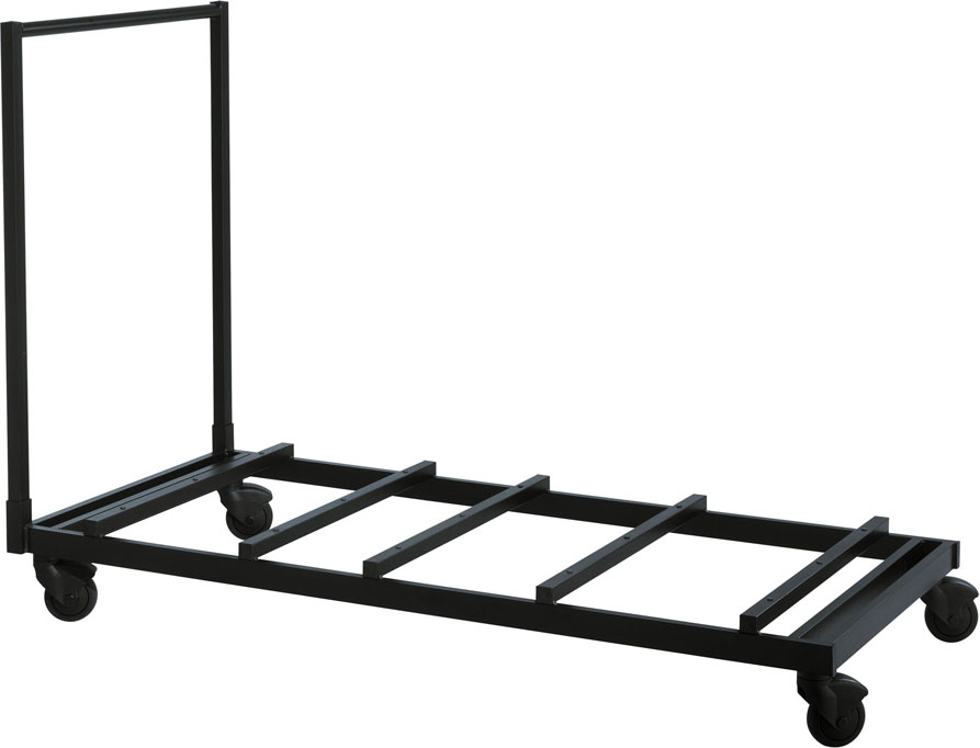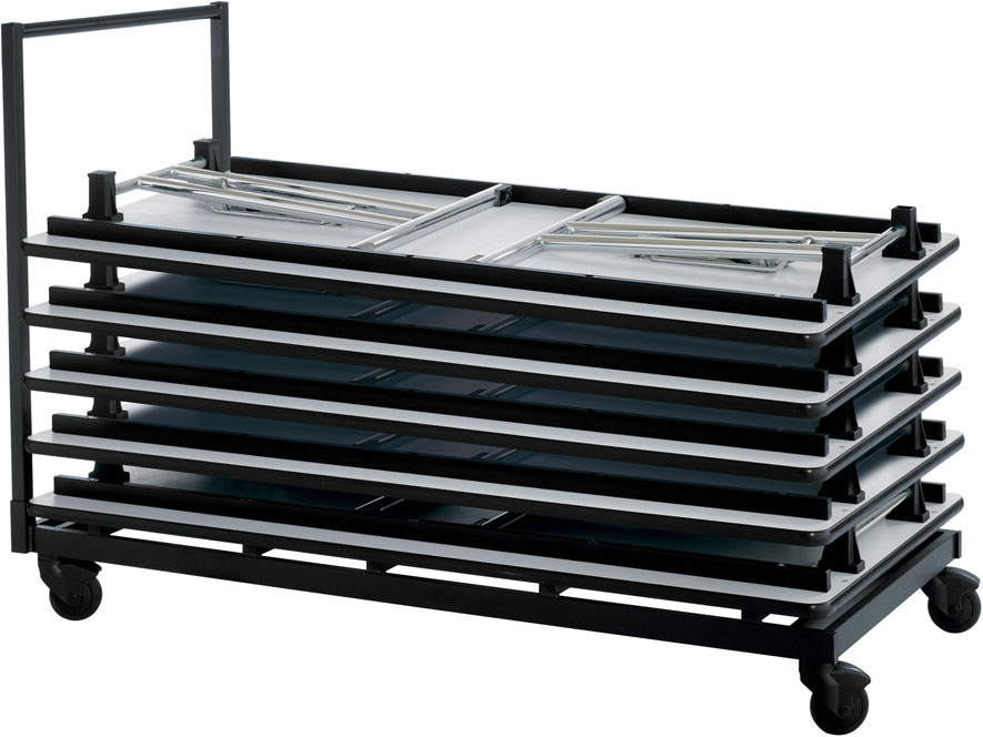 Allzweck-Transportwagen mit einer Kapazität für 10 Tische. Nutzlast 400,0 kg. Stopper gegen Verrutschen der Tische auf jeder Querstrebe. Rollen mit Kunststoffbereifung für leichten und geräuscharmen Transport.