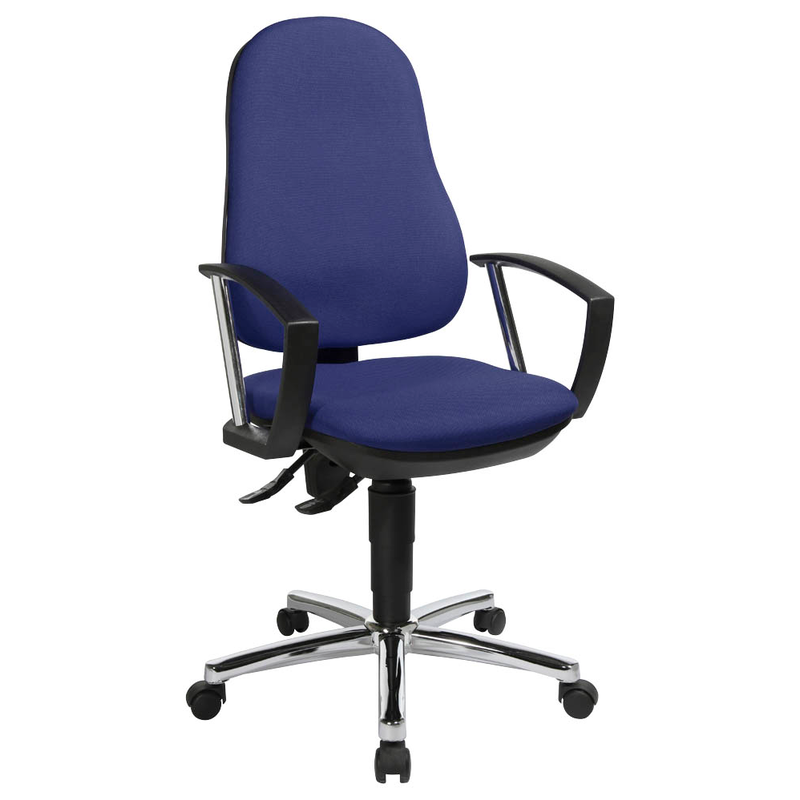 Die Rückenlehne aus angenehmem Polstermaterial sorgt dafür, dass Sie stets einen hohen Sitz-Komfort genießen können. Stellen Sie die Rückenlehne auf Ihre Bedürfnisse ein und finden Sie immer Ihre ideale Sitzposition. Armlehnen tragen zudem wesentlich zu einer gesunden Sitzposition bei, indem sie sowohl Arme, Nacken sowie den Schulterbereich entlasten. Die Doppelrollen des Topstar Bürostuhls Support® P Deluxe, 8179AG22 Stoff anthrazit, Gestell chrom sind hervorragend für Teppichboden geeignet.